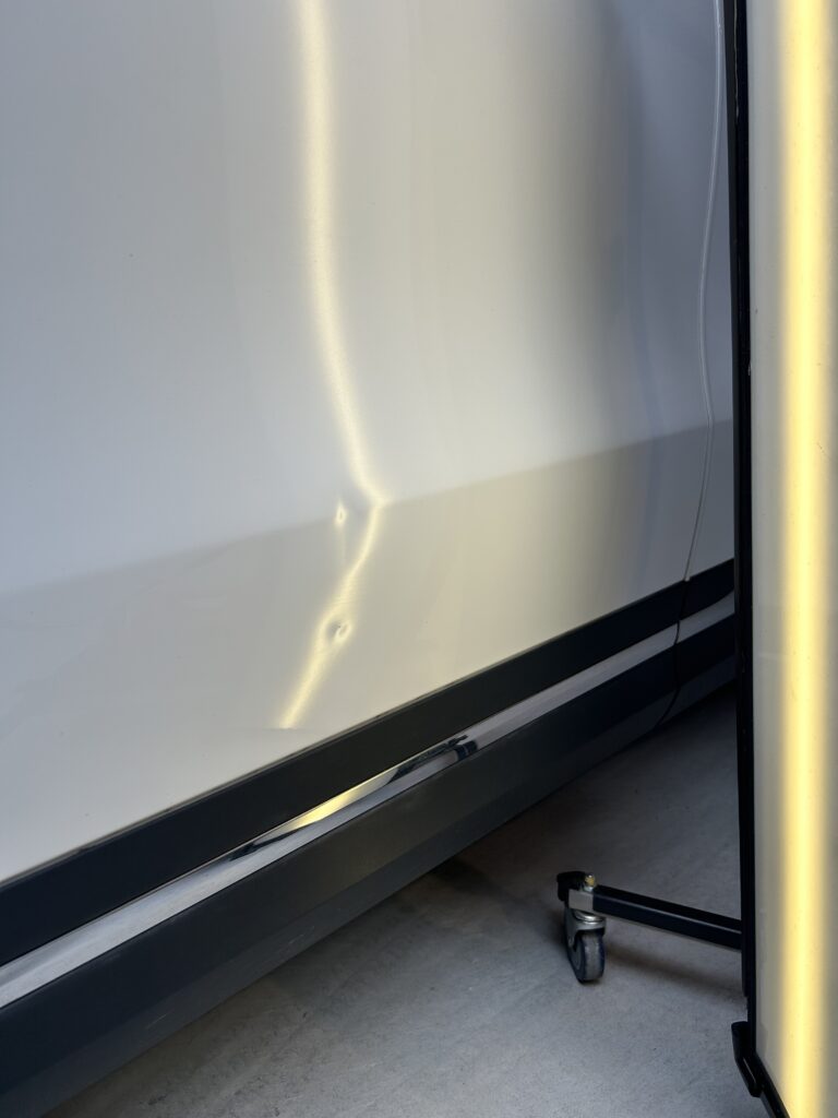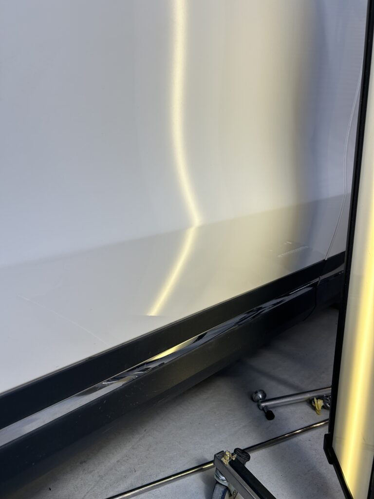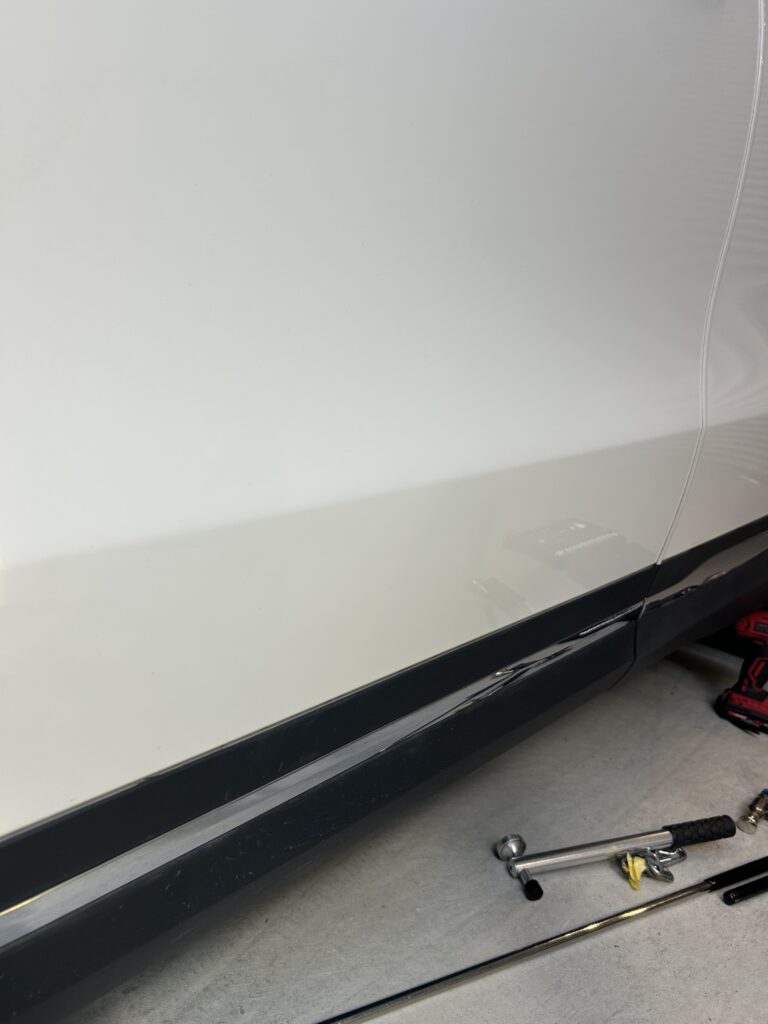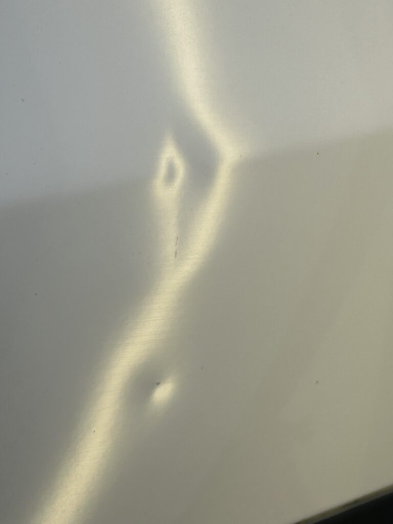 プレスライン上に大きめの凹みと少し下側にも凹みがあります ドアトリムを外しプッシュツール&ツイストツールで仕上げました しっかりプレスラインも出せたと思います 凹みが有るお車をお値打ちに購入し安価でデントリペアは良い考え方だと思います ご依頼ご来店ありがとうございました